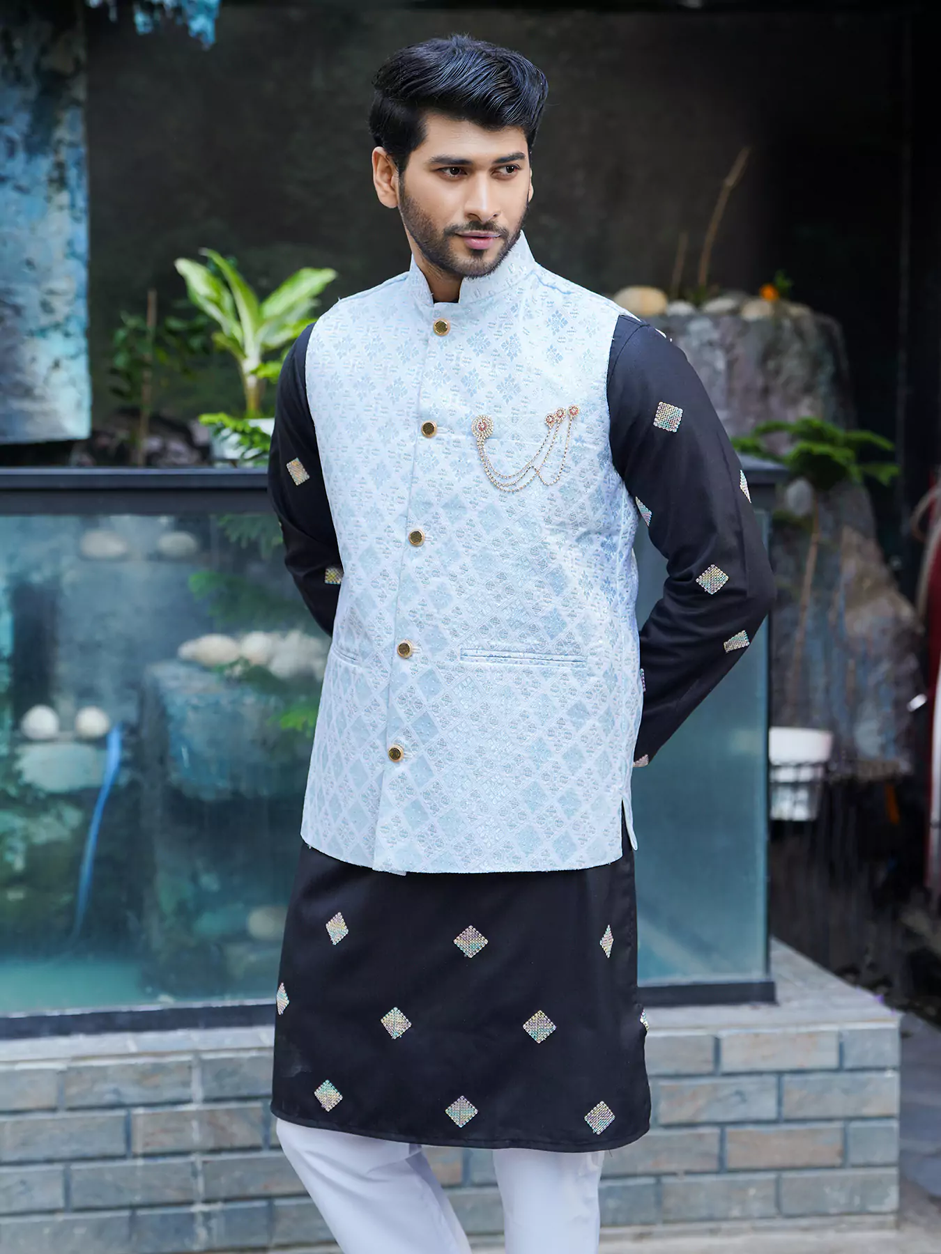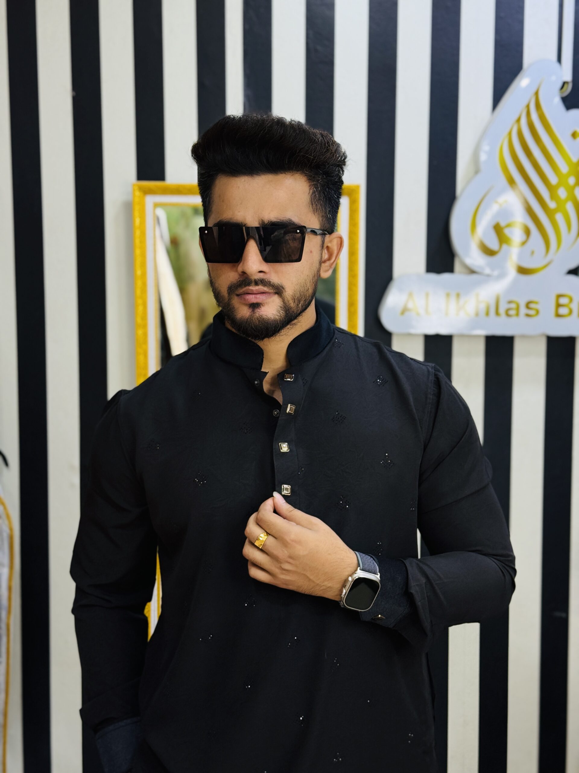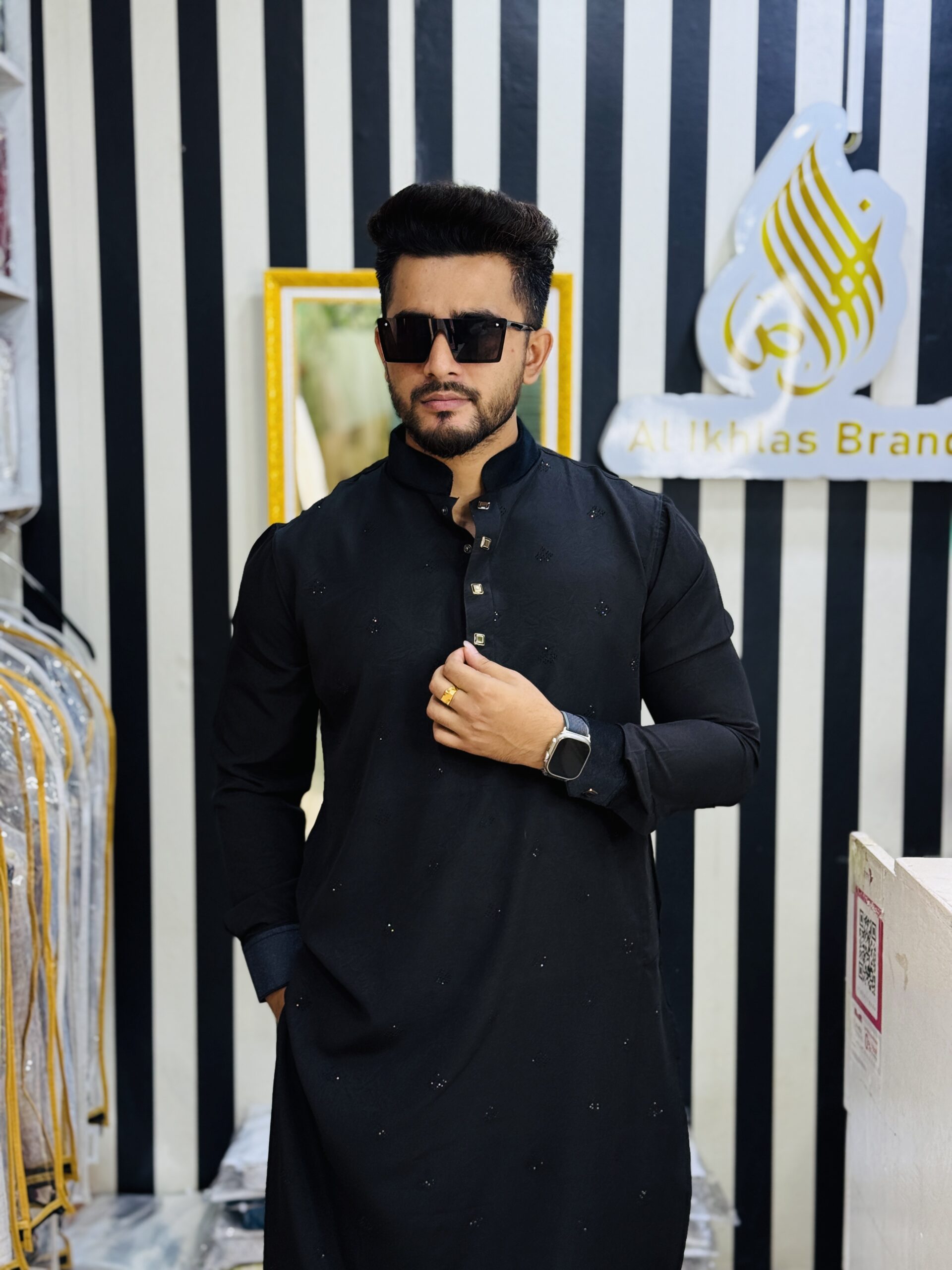 Premium Stone Punjabi Collection Black